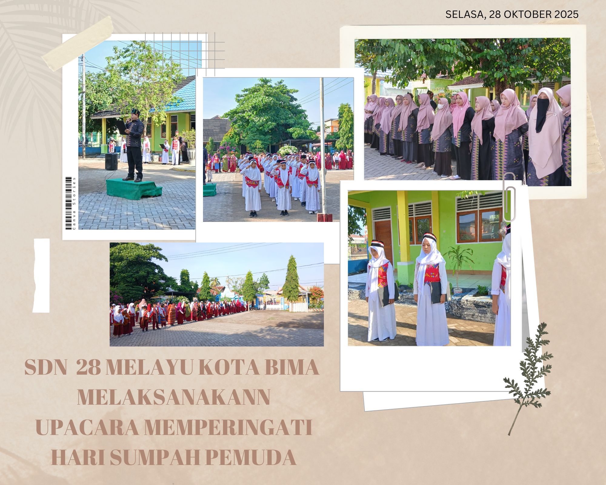 Dalam rangka memperingati Hari Sumpah Pemuda yang ke-97, SDN 28 Melayu Kota Bima menggelar upacara bendera pada hari Selasa, 28 Oktober 2025, di halaman sekolah. Upacara berlangsung khidmat dan penuh semangat dengan diikuti oleh seluruh guru, staf, serta siswa-siswi dari kelas I hingga kelas VI.